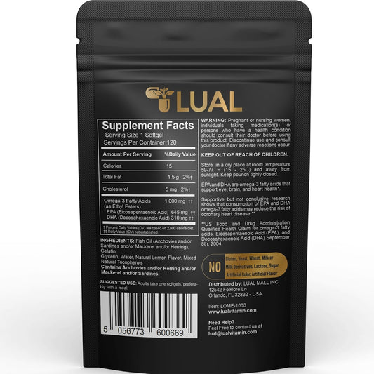 Omega-3 Fish Oil Supplement 1000mg | 120 Soft Gels | High-Quality Omega-3 Fatty Acids Dietary Supplement