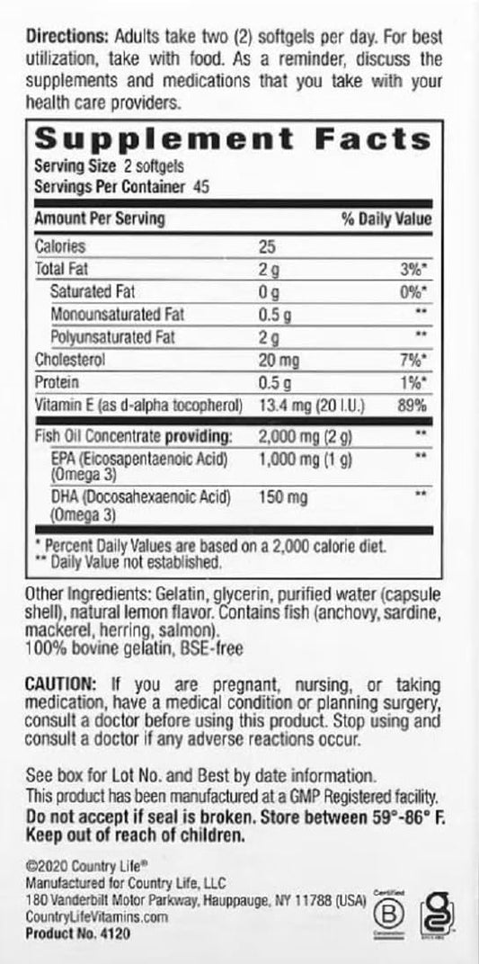 Omega 3 Mood Support Supplement by Country Life - Fish Oil Blend for Emotional Well-Being and Cognitive Health