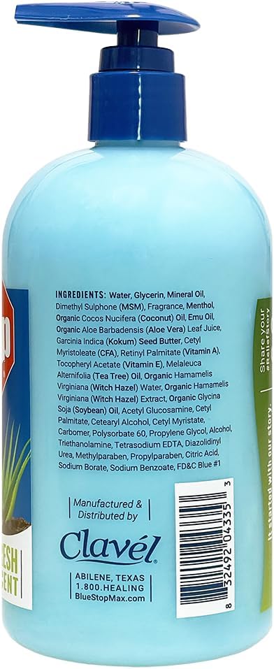 Blue Stop Max Muscle & Joint Relief Gel - 16 Oz Pump Bottle - Fast-Acting Cream for Sore Muscles, Back & Neck Relief with Numbing Emu Oil Formula - Ideal for Ankle, Leg Cramps, and Tennis Elbow