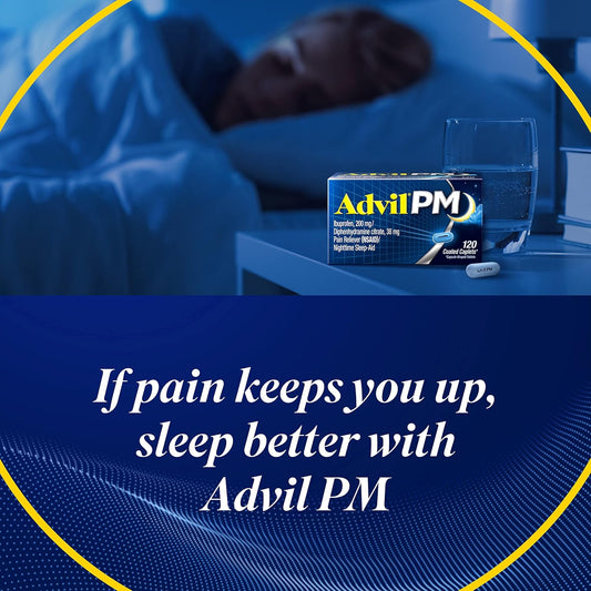 Advil PM Pain Reliever & Nighttime Sleep Aid - 40 Coated Caplets, Ibuprofen Pain Relief with Diphenhydramine Citrate