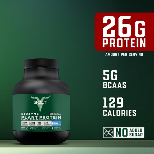 Bolt Biozyme Plant Protein with Phycocyanin & Ayurvedic Herbs | Vegan Protein Powder for Muscle Support & Recovery | Complete Amino Acids | 2Lb/32oz, Madagascar Vanilla Flavor