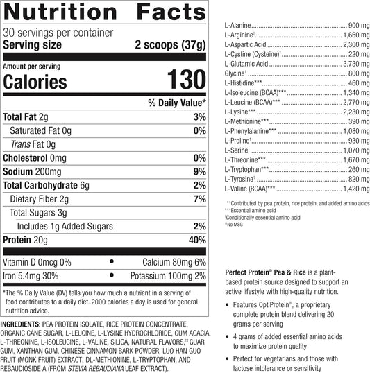 Metagenics Perfect Protein Pea & Rice with OptiProtein - Vanilla Flavor - 30 Servings - 39.15 Oz - Plant-Based Protein Supplement