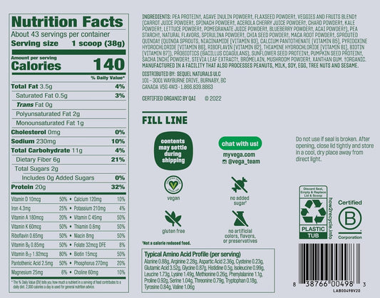 Vanilla Protein Powder & Greens Blend - Vega Premium Sport Protein