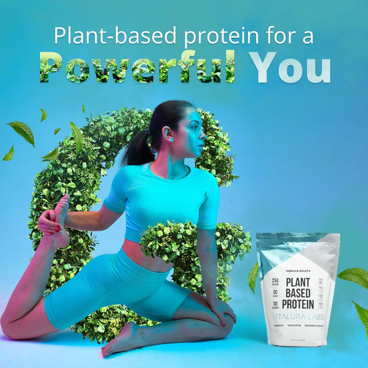 Vitalura Labs NSF Certified Plant-Based Protein Powder - Vanilla Gelato Flavored - 30 Servings, 25g Protein Per Serving
