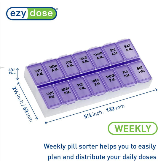 Purple Ezy Dose Weekly Pill Organizer - Medium Compartments, AM/PM Vitamin Case, Medicine Box - 7-Day - 2 Times a Day
