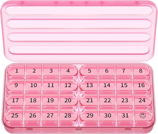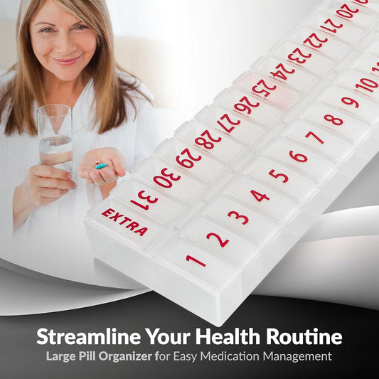 Monthly Large Pill Organizer with 32 Compartments - 30 Day Pill Box for Once-a-Day Medication, BPA-Free Plastic with Removable Lid for Easy Loading - Ideal for Vitamins & Pills