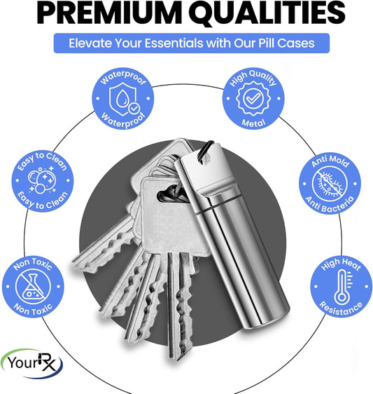 Waterproof Large Capacity Pill Holder Keychain - Travel Pill Organizer for Tablets & Capsules - Durable Mini Pill Case for Purse - Silver Pill Container