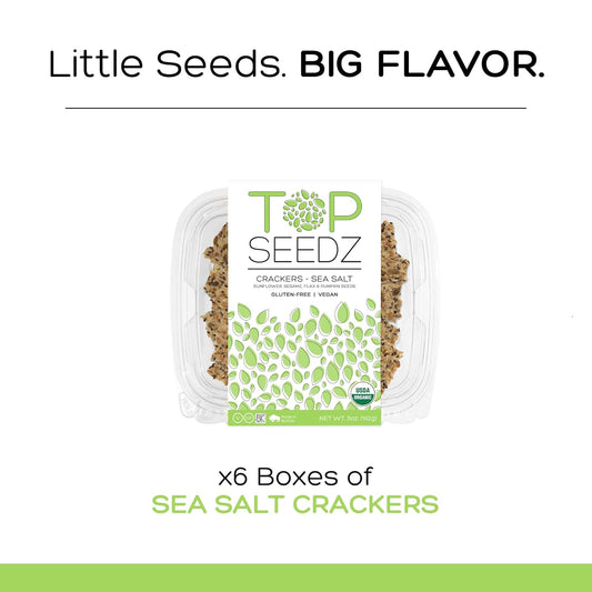 6-Pack of Top Seedz Certified Organic Sea Salt Seed Crackers - Gluten Free & Vegan | 5oz Healthy Crackers with Plant Based Protein | Sunflower, Flax, Sesame & Pumpkin Seed Mix