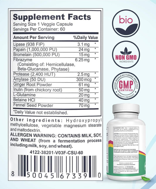 Digestive Enzymes with Probiotics, Prebiotics, Postbiotics - Bromelain, Amylase, Lipase - 60 Capsules for Digestion & Immune Support - 30 Day Supply