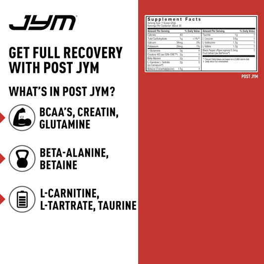 JYM Supplement Science Post-Workout Recovery Powder with Creatine HCL, BCAA's, Glutamine - Mandarin Orange Flavor - 30 Servings for Strength and Performance