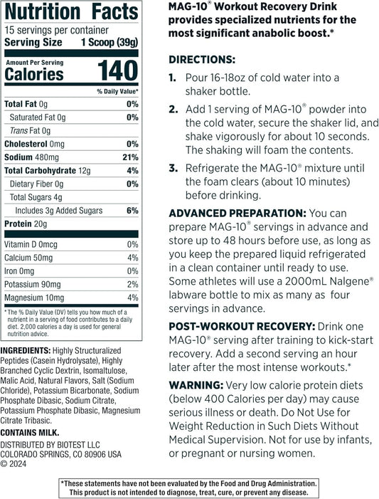 Biotest MAG-10 Recovery Drink Mix - Muscle Gains & Quick Recovery - Lemon Flavor - 15 Servings