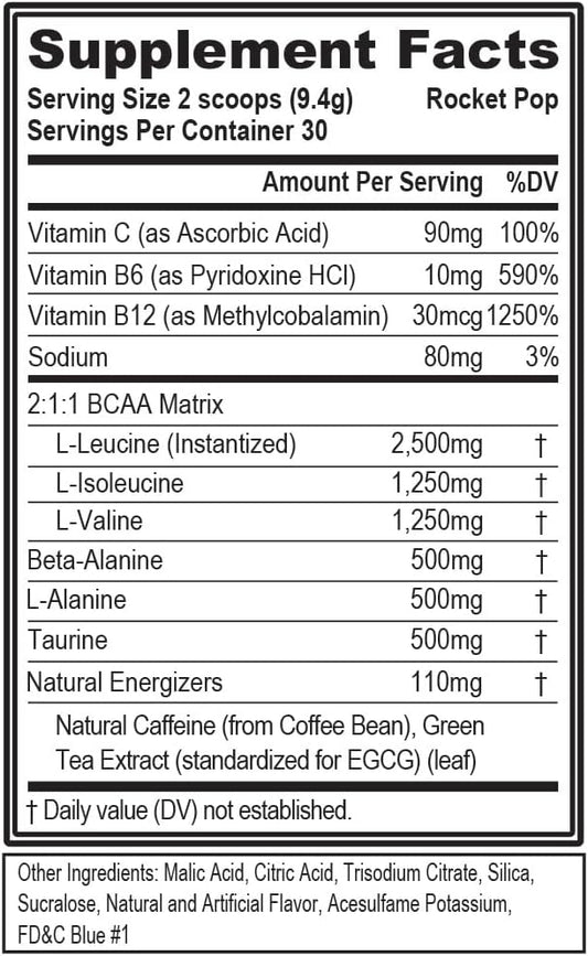 Evlution EVL BCAAs Amino Acids Powder - Energizing BCAA Pre Workout Drink for Muscle Recovery and Endurance - Post Workout Recovery Drink with Natural Caffeine - Rocket Pop Flavor
