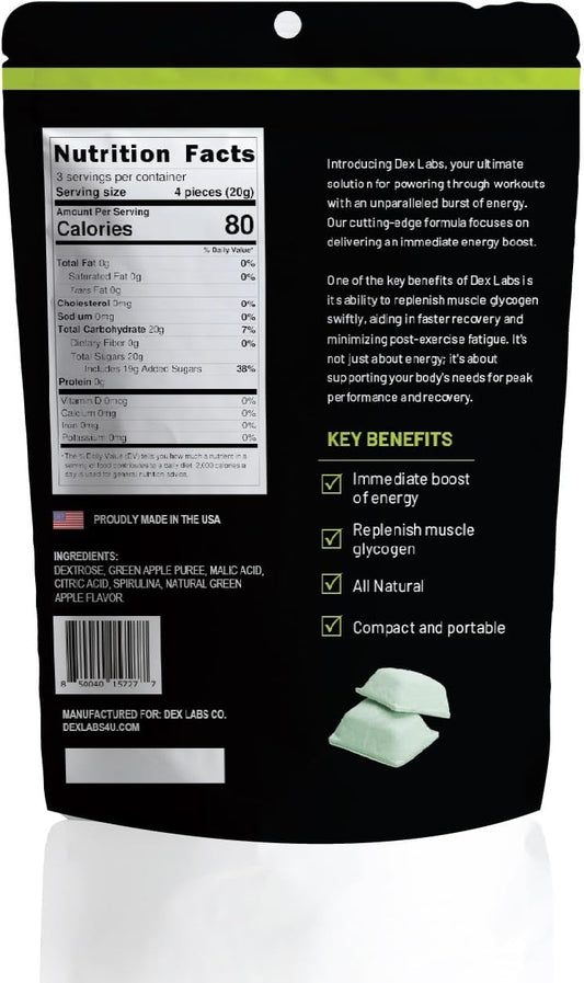 Green Apple Flavoured Dextrose Energy Bites for Workout and Running - Portable Glucose Tablets - Pack of 01