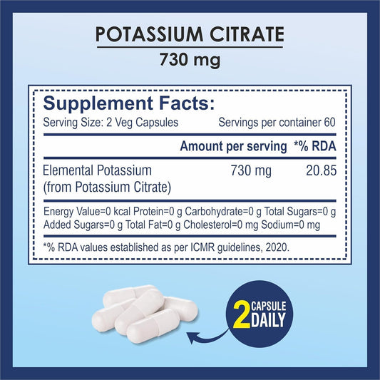 Potassium Citrate 800mg Tablets for Nerve, Muscle, Joint, and Bone Health - 120 Veg Capsules - Men & Women Support - Muralidhar Exporters