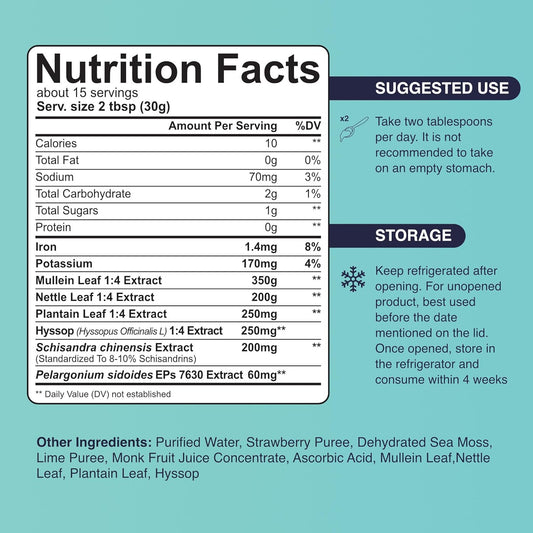 Premium TrueSeaMoss Gel for Respiratory Health - 5+ Fruit Flavors - Vegan Vitamin & Mineral Rich Supplement - Made in USA - Strawberry - 1 Pack