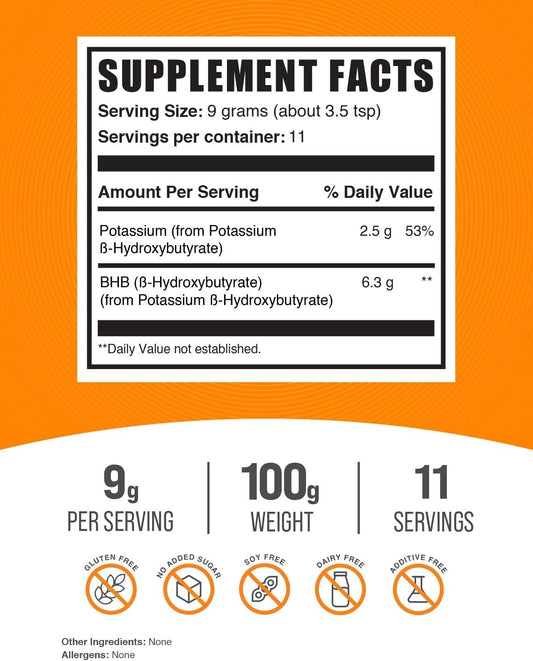 Potassium BHB Powder - Electrolyte Supplement with Beta-HydroxyButyrate Salts - Gluten-Free, 100g (3.5 oz) - BulkSupplements