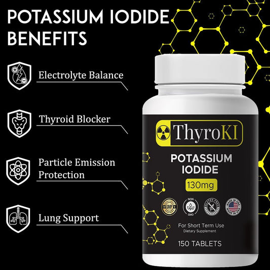 ThyroKI Potassium Iodide Tablets 130 mg - 150 Tablets for Thyroid Support - Fast Dissolving KI Pills for Emergency Survival - Non-GMO Dietary Supplement