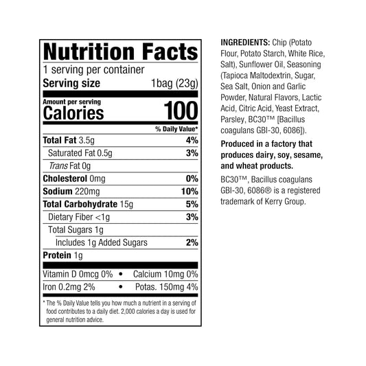 WonderSlim Sour Cream & Onion Potato Well Chips with Probiotics & Immune Support - Vegan & Gluten Free (12ct)