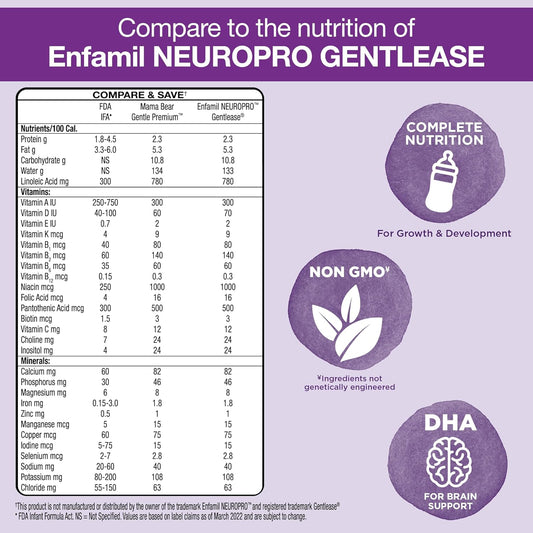 Mama Bear Gentle Premium Baby Formula Powder with DHA, Immune Blend & 2'FL HMO for Gas & Crying, 2.07lb