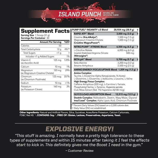 PMD Sports Ultra Pump Fuel: Island Punch Pre-Workout Drink Mix - Boost Energy, Strength, and Recovery with Complex Carbs and Amino Energy - 30 Servings