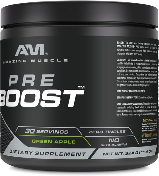Natural Green Apple Pre Workout Supplement Powder | Amazing Muscle Pre Boost | Made in USA | 30 Servings | 324g