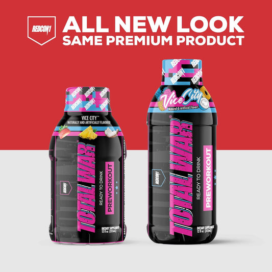 REDCON1 Total War Vice City RTD Preworkout Drink - 350mg Caffeine, Beta Alanine, Citrulline Malate - Keto Friendly - 12 Servings