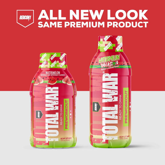 Redcon1 Total War RTD Preworkout Watermelon - 350mg Caffeine, Beta Alanine, Citrulline Malate - 12 Drinks for Pump and Energy