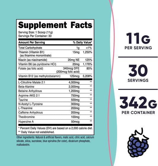 Nutricost Women's Pre-Workout Powder - Blue Raspberry Flavor - 30 Servings