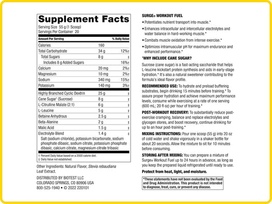 Biotest Surge Intra Workout Supplement - Beta-Alanine, L-Leucine, Citrulline Malate, Betaine, HBCD, Electrolytes (Berry, 20 Servings)