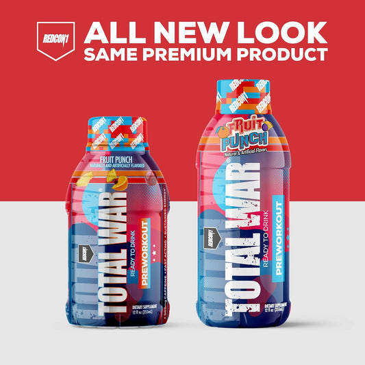 Redcon1 Total War RTD Pre Workout Drink - Endurance Boost, Keto Friendly Formula - Amino Acids + Citrulline Malate for Men & Women - Fruit Punch, 12 Servings