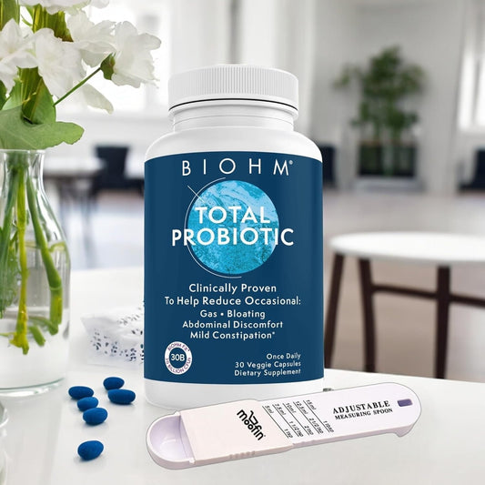 moofin Biohm Daily Probiotic 60 Veggie Capsules, 30 Billion CFUs, Digestive Enzymes, Reduces Bloating, Good Bacteria & Fungi Blend, Includes Measuring Spoon, Pack of 2