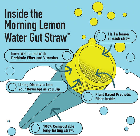 Prebiotic Fiber Lemon Water Infused Drinking Straw - Gut Health Support with Real Lemon Inside Each Straw