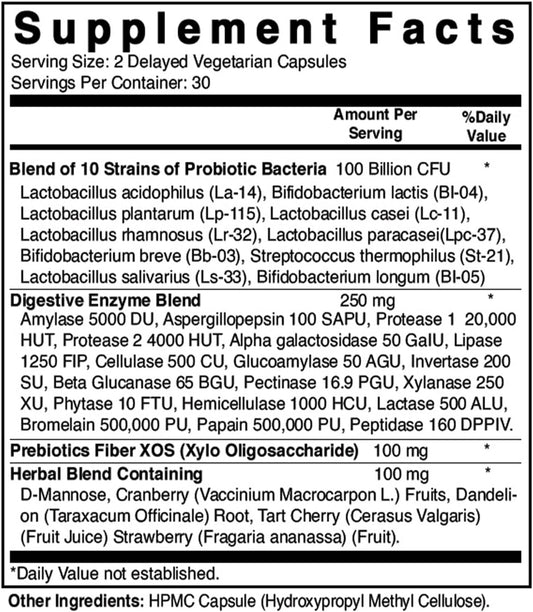 Women's Probiotic Supplement with 100 Billion CFU, 10 Strains, Prebiotics, Digestive Enzymes, Herbal Blend - 60 Delayed-Release Capsules for Immune, Digestive, and Gut Health