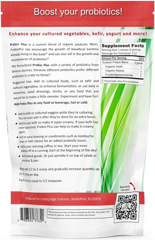 Organic Prebiotic Fiber Powder Blend for Gut Health - 8 oz Supplement with Cutting Edge Cultures Prebio Plus
