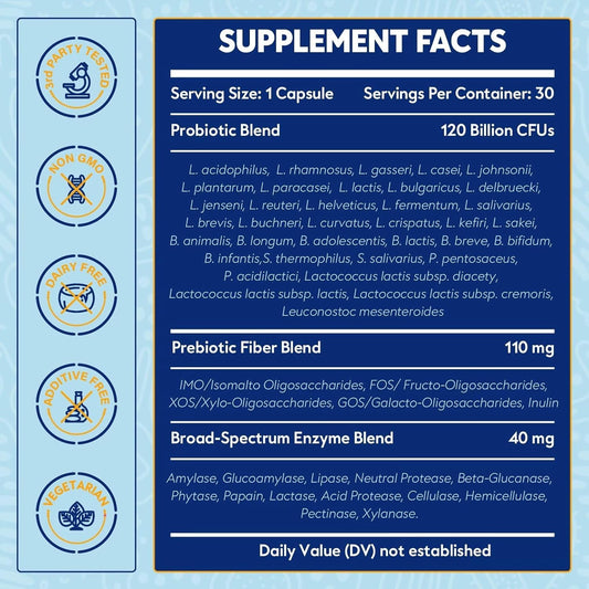 High Potency Probiotics for Gut Health - 120 Billion CFU, 36 Strains, Delayed Release, Stomach Acid Resistant - 30 Capsules, No Refrigeration Needed