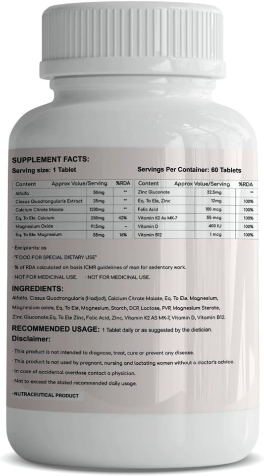 Joint Health Support Tablets | Bone & Teeth Strengthening Formula | Fracture Recovery Aid | 60 Vegetarian Tablets