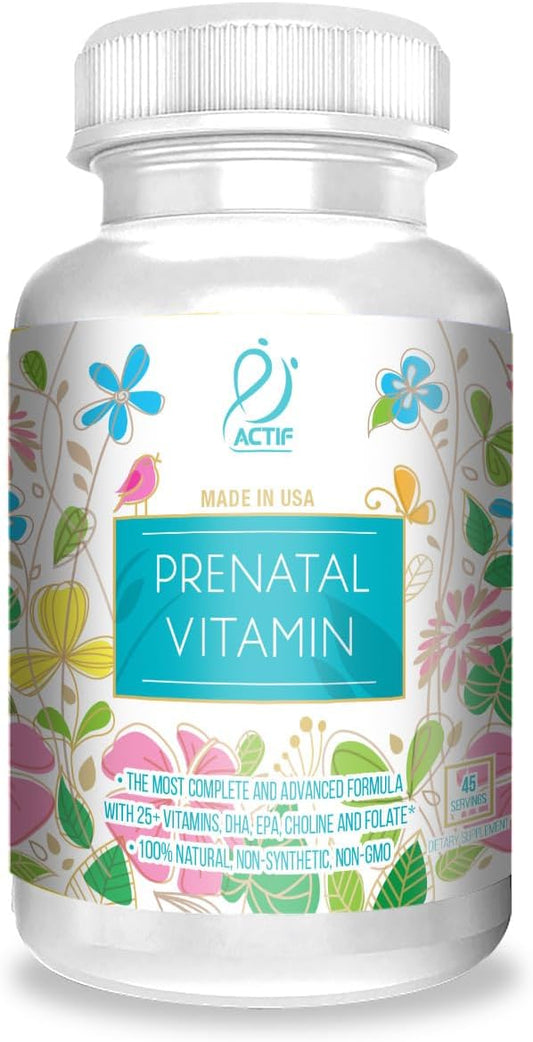 ACTIF Organic Prenatal Vitamin 90 Count with 20+ Vitamins, Omega-3, DHA, Organic Herbs - Non-GMO, Made in USA