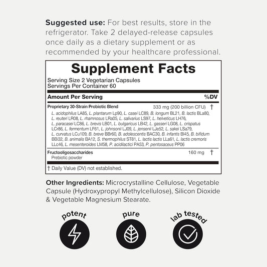 Toniiq 200 Billion CFU Probiotic Supplement - 30 Verified Strains, Prebiotic Blend - Extended Release Capsules