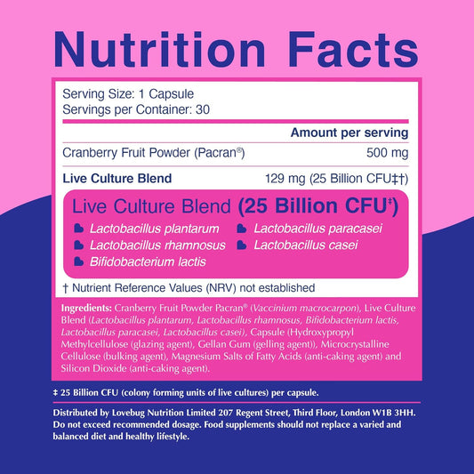Lovebug Probiotics Yeast + Vaginal pH Support Capsules - 50 Billion CFU - Clinically Studied Ingredients for Yeast & UTIs - 30 Count