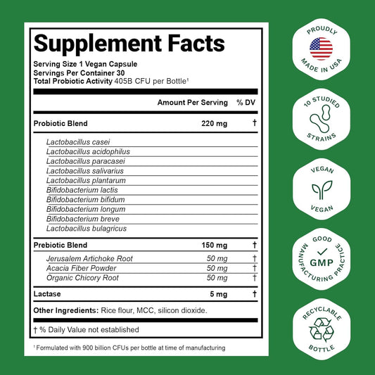 Premium Daily Probiotic Capsules with Prebiotics - 60 Billion CFU for Gut Health - Vegan & Non-GMO Formula for Men & Women - Gluten Free - 30 ct