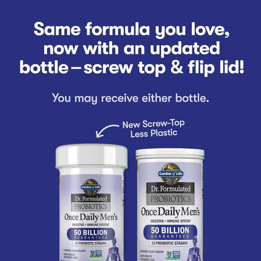 Men's Digestive Health Probiotic: Garden of Life Dr Formulated 50 Billion CFU, 15 Probiotics + Organic Prebiotic Fiber for Colon & Immune Support - Daily Gas Relief, Shelf Stable - 30 Capsules