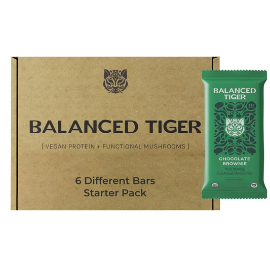 USA-Made Organic Vegan Protein Bars with Functional Mushrooms & Adaptogens - Sampler Pack of 6 Bars (1500mg Lions Mane, Chaga, Reishi, Cordyceps)
