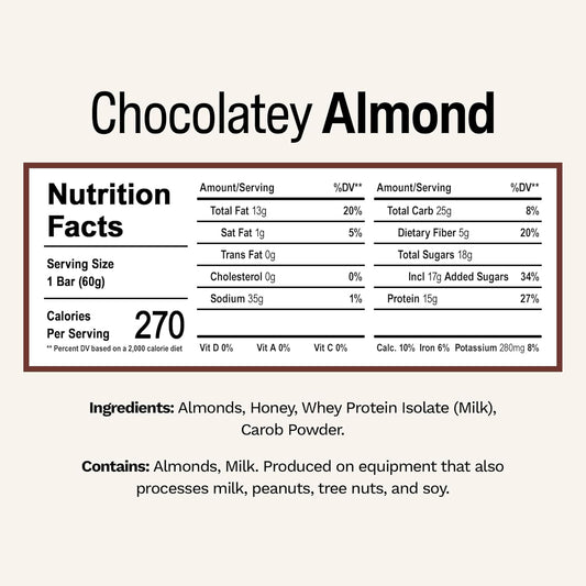 Chocolate Almond Rise Whey Protein Bars - 15g Protein, 5g Fiber, Gluten-Free, Soy-Free Breakfast & Snack