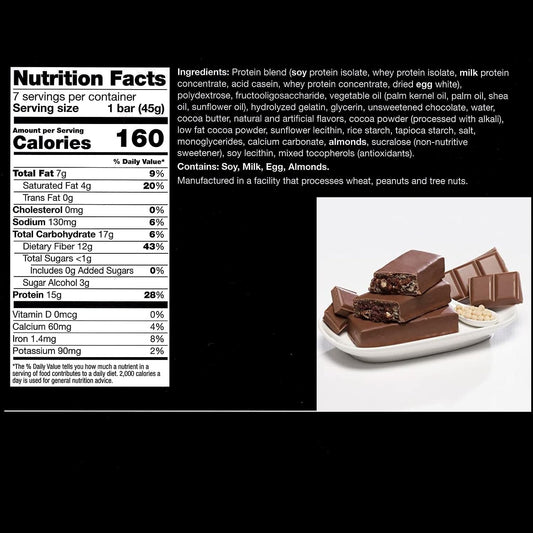 Chocolate Crisp Protiwise High Protein Bar - 15g Protein, Meal Replacement, Keto-Friendly - 5/box