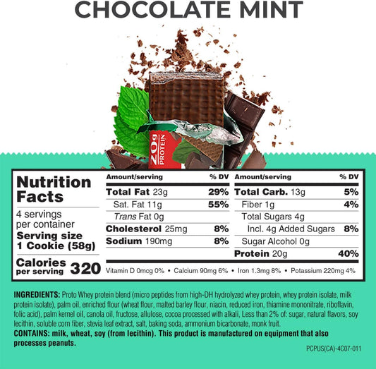 High Protein Chocolate Mint Wafer Bars, Power Crunch PRO Snacks, 2.0oz (4 Count) - Delicious Taste & Convenient Snack