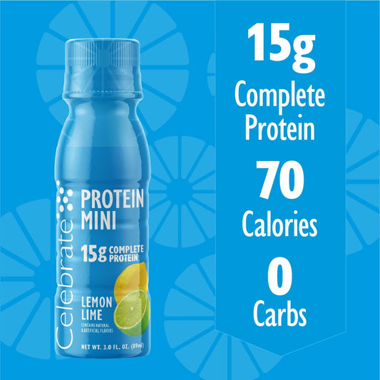 Mini Protein Drinks with 15g Complete Protein - Gluten-Free, Sugar-Free, Fat-Free Lemon Lime Shots (6 Pack)