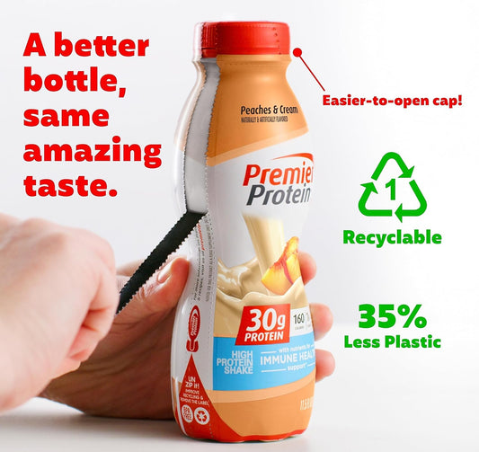 Peaches & Cream Premier Protein Shake - 30g Protein, 1g Sugar, 24 Vitamins & Minerals, Immune Health Support - 11.5 Fl Oz, Pack of 12