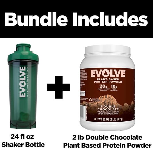 Double Chocolate Plant Based Protein Powder with 20g Vegan Protein, 3g Fiber, Non-GMO, Dairy Free, Exclusive 2lb + Blender Bottle, BPA-free 24oz