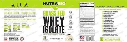 Cookies & Cream Grass Fed Whey Isolate Protein Powder - 25g Protein Per Serving - Sugar Free Lean Muscle Supplement - 2lb, 29 Servings