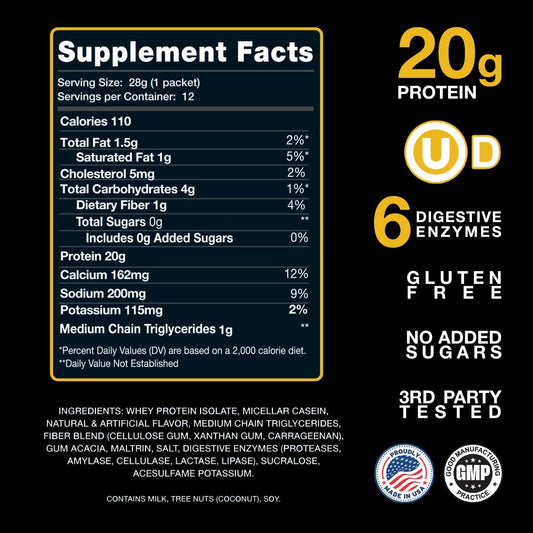 Devotion Nutrition Buttery Blend Protein Powder Packets - Gluten Free, Keto Friendly, No Added Sugars - 1g MCT, 20g Whey & Micellar Protein